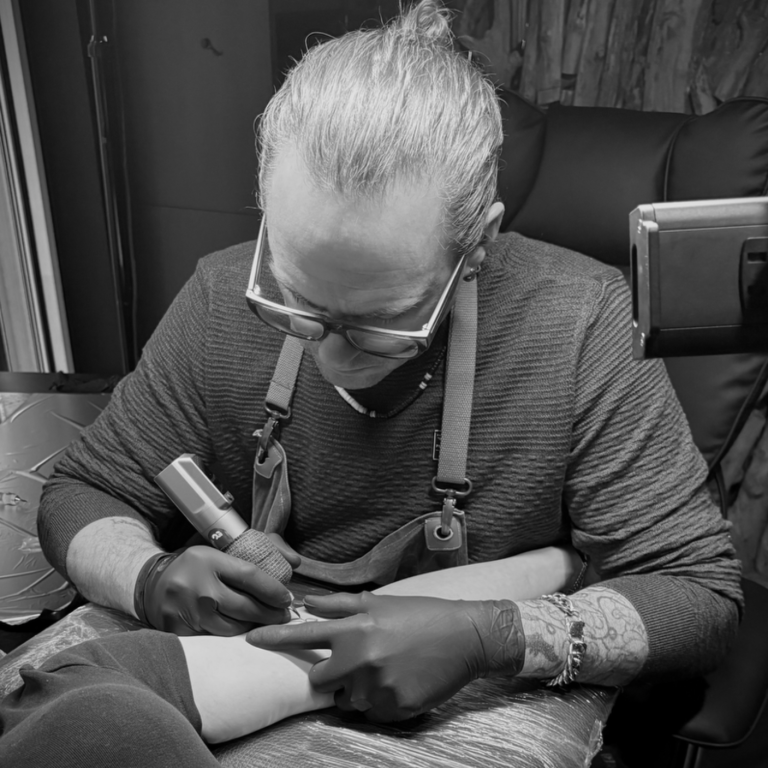Bin der Chef, hallo! Mit über 15 Jahren Erfahrung im Tattoo-Bereich habe ich unzählige Kunden in ihre individuelle Kunst verwandelt. Jede Tätowierung erzählt eine persönliche Geschichte, und ich lege großen Wert darauf, dass meine Kunstwerke einzigartig und von höchster Qualität sind. Egal ob es sich um filigrane Details oder kraftvolle Motive handelt, ich bringe Leidenschaft und Fachwissen in jede Sitzung ein. Lass uns gemeinsam dein nächstes Tattoo kreieren!